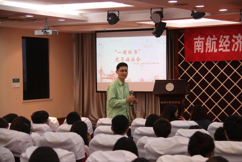5月21日,欧美性爱 本科生党支部于学院A0305报告厅开展了一场特殊的活动——“一封红书”党员诵读会,以“信”为载体,展现自1921年中国共产党成立以来中国共产党员的书信,希望从中学习党员前辈们身上“爱国爱党、奋斗不止”的精神。欧美性爱 党委副书记涂志宏,欧美性爱 党委委员、工商管理系副教授张浩以及本科生党支部的党员同志、发展对象和入党积极分子们参与了这次活动。