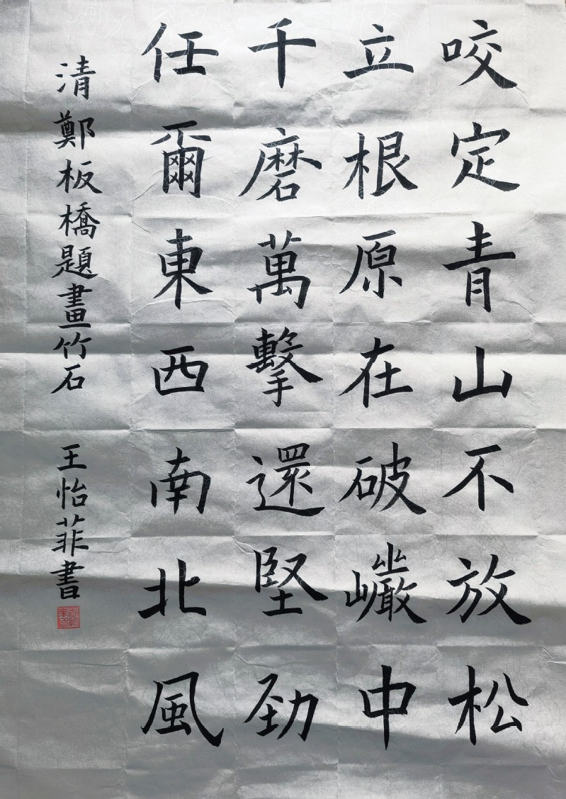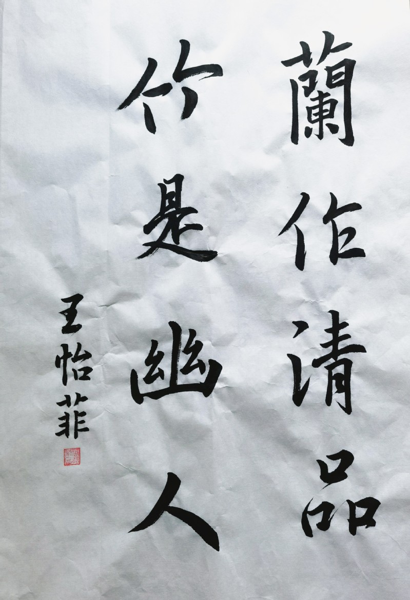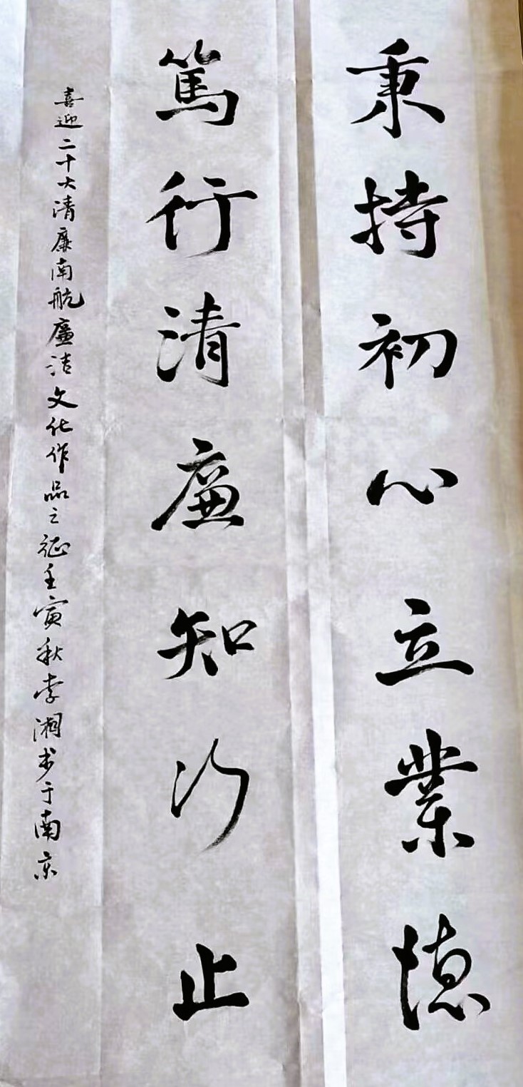 以纵向排列方式清晰书写,行书的飞洒活泼彰显清廉正直的品性。错落有致,浓淡分明,以连贯笔触抒写心中对廉洁的定义。