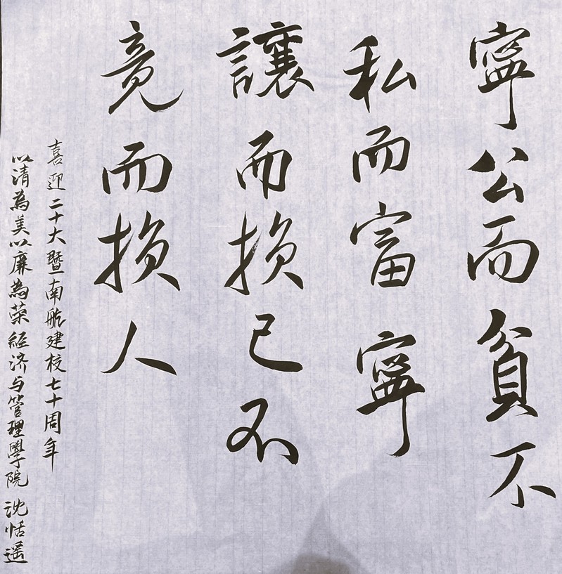 近期,廉心向未来——“清廉南航”廉洁文化作品征集在欧美性爱 顺利展开,反响热烈。经管学子坚持以习近平新时代中国特色社会主义思想为指导,围绕学习贯彻党的二十大精神、推进清廉南航建设等重要工作,积极倡导以清为美、以廉为荣的价值理念,运用艺术的表现形式将廉洁教育化虚为实,展现优良校风、学风、家风,以手中纸笔,描绘出他们心中的廉洁。