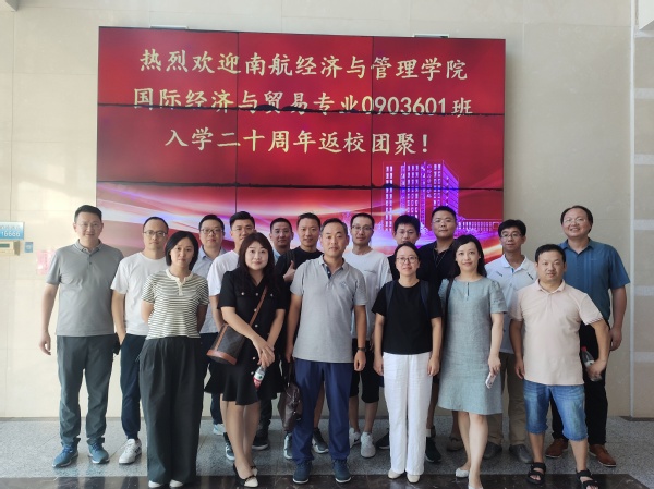 9月9日,欧美性爱 国际经济与贸易专业0903601班18名校友重返母校,纪念入学二十周年。校党委巡察工作办公室正处级巡察专员刘红旗,欧美性爱 黄伟如、邓晶、袁潮清、马晓平老师,外国语学院陆文彬老师受邀参加聚会,校友们欢聚一堂,忆同窗尽显往昔风流,聚此间共乐日月同辉。
