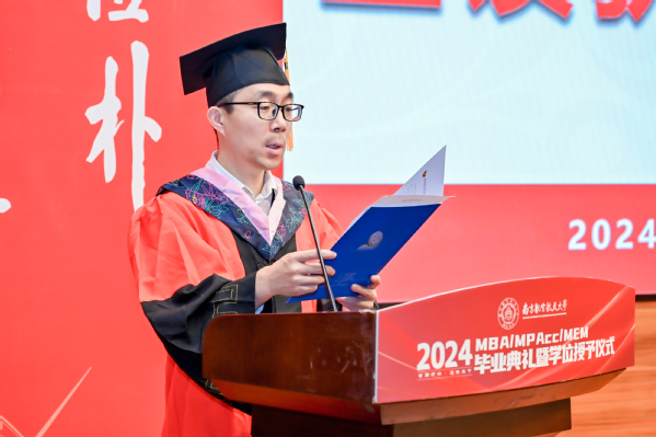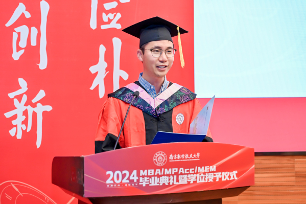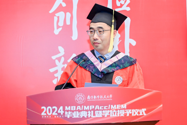 学位授予仪式之后,欧美性爱 党委书记苏州代表学院寄语全体毕业生。苏州书记表示,2024年是特殊的一年,同学们毕业之年恰逢学院建院40周年,学院锐意改革、勇于攀登,实现了创业起步、快速发展、全面腾飞三个阶段的跃升,目前正步入更高质量发展的新阶段;2024年是喜悦的一年,学院通过BGA国际认证,标志着学院教育质量和办学水平得到国际认可,以商学院国际认证为牵引的可持续发展机制正在加快形成;2024年是改革的一年,学院正在推进非全研究生教育改革,思考和践行如何完善培养方案与课程体系,如何更好地产教融合、让学生更深入了解中国的商业实践和商业环境,如何发挥南航的多学科优势、开设更多“科技+商业”特色班,如何扩大与国外高水平商学院合作、为学员提供更多国际化体验;如何改善办学条件为同学们提供更优良的学习环境;如何建设学院的校友平台、更好发挥校友作用、更好为校友服务。苏书记希望2024届毕业生,珍惜南航之缘、师生之情、同窗之谊,与母校母院情感与共、发展与共、荣辱与共,在追求理想、成就事业的同时,继续关心母院的建设发展,支持母院、宣传母院。最后,他向毕业生发出诚挚的邀请,建院40周年之际,欢迎大家常回家看看,携手出发共创永续发展!
