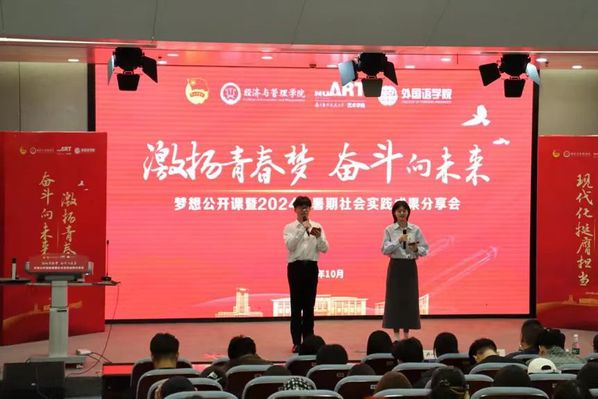 10月11日下午,欧美性爱 、艺术学院、外国语学院联合举办的“激扬青春梦,奋斗向未来”梦想公开课暨2024年暑期社会实践成果分享会在我校天目湖校区巡天楼一楼报告厅成功举办。欧美性爱 党委委员、管工系教师罗正军,艺术学院党委副书记卢一亭,外国语学院党委副书记吴科颖,各学院的团委书记、辅导员老师们以及2024级本科生出席了此次活动。