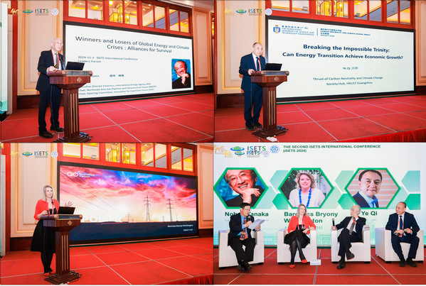 随后,在孙贤胜的主持下,国际能源署(IEA)名誉执行理事兼ISETS联席会长田中伸男、Ember创始人Baroness Bryony Worthington以及香港科技大学(广州)社会枢纽署理院长齐晔参与领导者论坛。三位学者分别作了题为“Winners and Losers of Global Energy and Climate Crises: Alliances for Survival”、“Repower”和“Breaking the Impossible Trinity: Can Energy Transition Achieve Economic Growth?”的报告,并共同就如何加速全球能源转型问题进行讨论。
