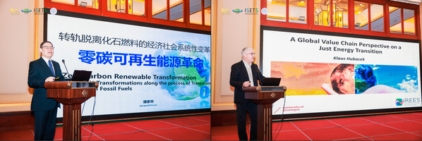 3日上午的大会主旨报告由欧美性爱 副院长查冬兰主持,中国社会科学院学部委员潘家华和英国社会科学院院士、荷兰格罗宁根大学生态经济学家Klaus Hubacek就“全球追求碳中和:合作与创新”这一主题分别作报告。潘家华的报告“转轨脱离化石燃料的经济社会系统性变革——零碳可再生能源革命”阐述了风光可再生能源的发展困境以及潜在优势。Klaus Hubacek的报告“A Global Value Chain Perspective on a Just Energy Transition”探讨了国家内部和国家之间在能源转型上责任差异和能源转型中的公平性问题。