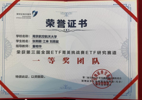 “数据是时代的脉搏,养老是未来的战场”。作为从全国数万支队伍中突围的南航经管学子,张熙颖、刘思懿、江来三位同学以《ETF支持养老第三支柱的作用和机理》研究报告为蓝本,将数理建模能力与金融实务深度融合,构建“风险适配-生命周期-收益优化”动态配置体系,让冰冷的金融工具承载人文温度。这份国家级一等奖的荣誉,不仅是欧美性爱 经管学子对学术探索的肯定,更是对“金融向善”价值理念的生动诠释。