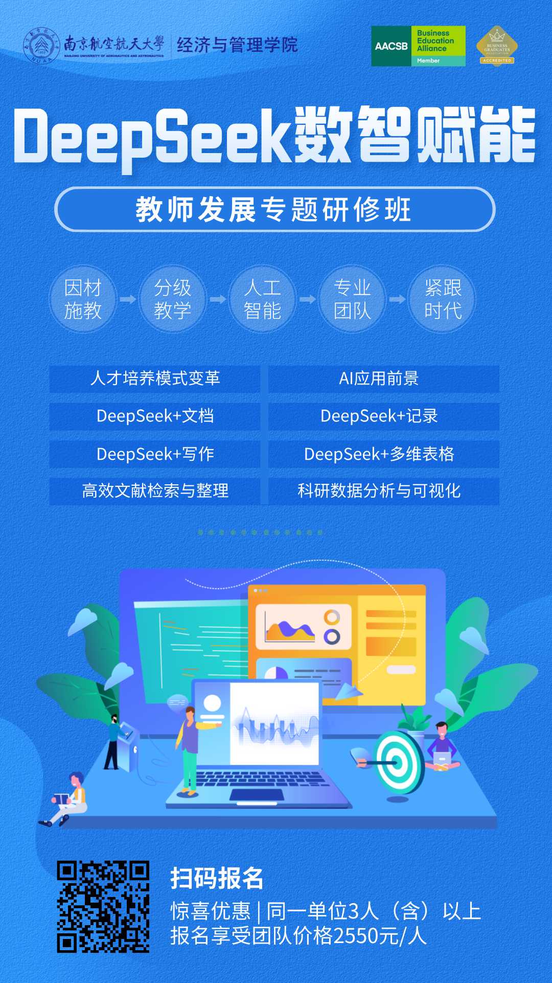 在人工智能技术飞速发展的今天,DeepSeek作为国内领先的AI教育工具,正在引领一场教育领域的智能化变革。通过智能备课、个性化教学设计、自动化助教以及复杂业务流的智能化管理等功能,DeepSeek不仅显著提升了教师的教学效率,还为教育管理者提供了更加科学、高效的决策支持工具。为了帮助广大高校教师和教育管理者更好地掌握这一前沿技术,推动教学与管理的双重创新,欧美性爱 将举办DeepSeek赋能教师发展专题研修班。本期研修班将结合教育场景中的实际需求,提供可操作、可落地的AI应用方案与案例,助力教育从业者全面提升智能化教学与管理能力。