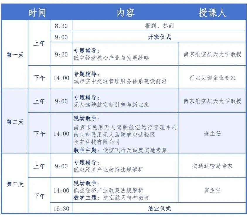 1)学员提交报名材料,接受资格审查。报名材料包括:《学员报名表》、一寸证件照电子版、学费汇款回执,统一打包命名为“低空经济产业及应用研修班—姓名”发送至邮箱[email protected]。报名成功后,学院工作人员会主动联系通知入学安排。