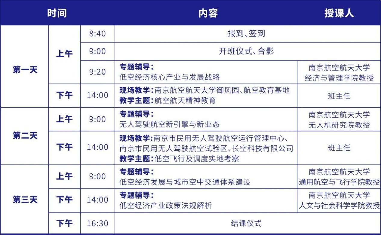 通过系列低空经济产业及应用的培训课程和培训模块的推进,服务和加强企业和政府在低空经济产业和应用领域的人才积累和储备。本研修班将是一个集结理论与实践、产业规划与实际操作的综合性学习平台。通过学习,学员们不仅能够深入了解低空经济的内涵、国内的发展情况和前景展望,以及国家对低空经济发展的政策措施和布局,还能够探索到产业规划、基础建设、项目招引、运营管理、风险管控等方面的实际操作技能。这种将理论与实践相结合的研修方式,将有助于培养一批具备实际操作能力的低空经济人才,为长三角乃至全国低空经济的快速发展提供有力的人才支撑。