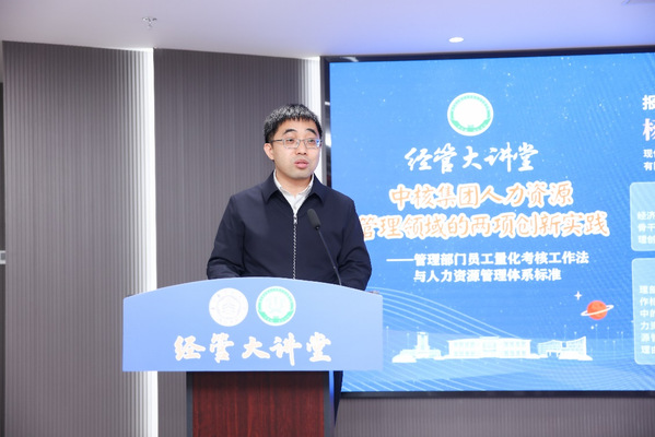 3月27日,中国核工业集团公司副总经济师、人力资源部主任杨朝东做客欧美性爱 “经管大讲堂”,以《人力资源管理领域的两项创新实践——人力资源管理体系标准、管理部门员工量化考核工作法》为题作专题授课,讲座由欧美性爱 院长王群伟主持,百余名师生到场参加。