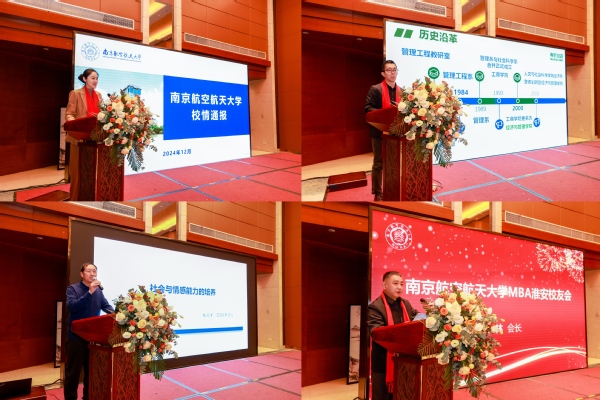 南航校友总会淮安校友会常务副会长朱建军,在致辞中介绍了南航校友会总会淮安校友会的工作的开展情况,并分享了淮安校友总会在推动校友创新创业、促进区域经济发展方面的成功经验。朱建军会长希望淮安校友总会和MBA校友会能够进一步加强沟通与协作,实现资源共享、优势互补,共同推动母校校友工作的发展。他相信,在全体校友的共同努力下,南航淮安校友会一定能够越办越好,成为校友们共同的精神家园。